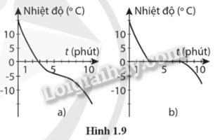 a) Đồ thị nào trong Hình 1.9 tương ứng với nước tinh khiết, với nước muối? Nhiệt độ đông đặc của nước tinh khiết là bao nhiêu?