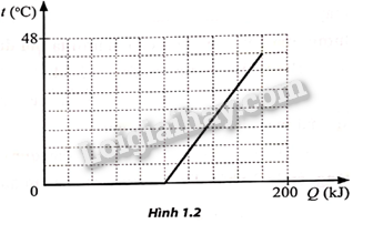 Đồ thị ở Hình 1.2 biểu diễn sự phụ thuộc nhiệt độ của khối băng theo nhiệt lượng cung cấp. Dựa vào đồ thị, hãy tính khối lượng khối băng. Biết nhiệt nóng chảy riêng của băng ở 0 °C là 3,34.105 J/kg.