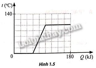 Cung cấp nhiệt lượng cho một khối băng (nước đá), người ta thu được đồ thị biểu diễn nhiệt độ của nước theo nhiệt lượng cung cấp được mô tả như Hình 1.5.