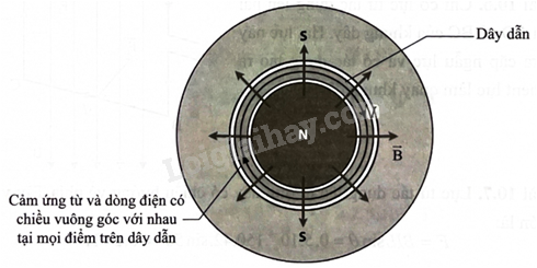 b) Cảm ứng tại điểm N song song với dây dẫn và có hướng cùng chiều với dòng điện chạy trong dây dẫn.
