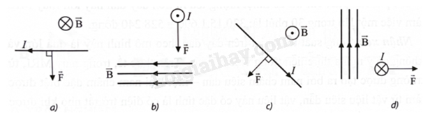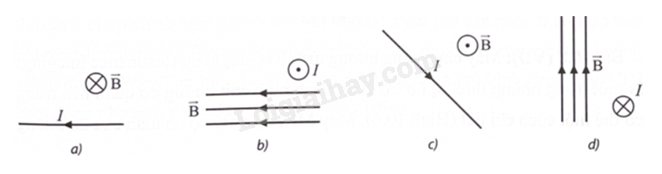 Xác định hướng của lực từ tác dụng lên các đoạn dây dẫn có dòng điện chạy qua, được đặt trong từ trường đều như các hình dưới đây: