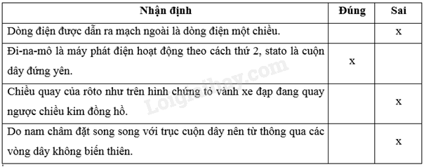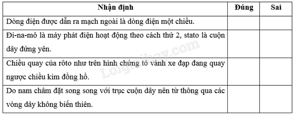 Nhận định nào sau đây là đúng hay sai về nguyên tắc hoạt động của đi-na-mô?