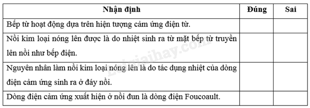 Nhận định nào sau đây là đúng hay sai về nguyên tắc hoạt động của bếp từ?