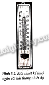 Nhiệt kế như Hình 3.2 cũng sẽ có cách chia độ giống như trong Bài 3.7, tức là lấy độ cao của hai nhiệt độ chọn làm mốc để phân chia khoảng cho mỗi đô.