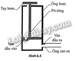 Hình 6.5 mô tả cấu tạo của một cái bơm tay xe đạp. Từ sơ đồ cấu tạo, hãy giải thích nguyên tắc bơm xe đạp.