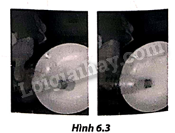 b) Làm thí nghiệm bằng cách kéo màng cao su phía đáy chai (cơ hoành) xuống dưới, sau đó thả tay ra từ từ. Quan sát và mô tả hiện tượng xảy ra với hai quả bóng bay trong chai (Hình 6.6). Giải thích hiện tượng quan sát được.