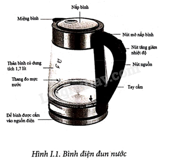 Một người lấy 1,2 kg những viên nhỏ nước đá trong tủ đông nơi có nhiệt độ °C để đưa vào đun trong một bình điện đun nước (ấm điện) chuyên dụng có thành bằng thuỷ tinh có thể quan sát được bên trong như Hình I.1. Thông số kĩ thuật của bình điện được cho như Bảng I.1