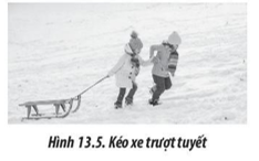 Trong Hình 13.5, hai bạn nhỏ đang kéo một chiếc xe trượt tuyết. Xét lực kéo có độ lớn 45 N và góc hợp bởi dây kéo so với phương ngang là 400.