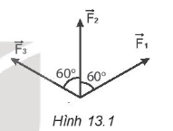 Một chất điểm chịu tác dụng của ba lực \(\overrightarrow {{F_1}} \), \(\overrightarrow {{F_2}} \), \(\overrightarrow {{F_3}} \) có cùng độ lớn 12 N. Biết góc tạo bởi các lực \((\overrightarrow {{F_1}} ,\overrightarrow {{F_2}} ) = (\overrightarrow {{F_2}} ,\overrightarrow {{F_3}} ) = {60^o}\) (Hình 13.1). Hợp lực của ba lực này có độ lớn là