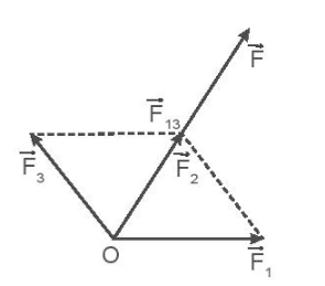 Vectơ lực tổng hợp: \(\overrightarrow F = \overrightarrow {{F_1}} + \overrightarrow {{F_2}} + \overrightarrow {{F_3}} = \overrightarrow {{F_{13}}} + \overrightarrow {{F_2}} \)