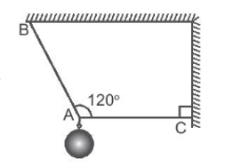 Một vật nặng có khối lượng 5 kg được treo vào các sợi dây không dãn như Hình 17.2. Xác định lực do vật nặng làm căng các sợi dây AB, AC. Lấy g = 9,8 m/s2.