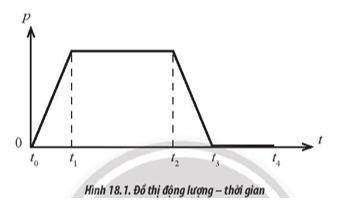 Từ đồ thị mô tả sự thay đổi của động lượng theo thời gian như Hình 18.1, hãy phân tích tính chất chuyển động của vật trong những khoảng thời gian từ t0 đến t1, từ t1 đến t2, từ t2 đến t3 và từ t3 đến t4.