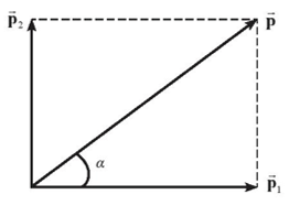 \(\tan \alpha = \frac{{{P_2}}}{{{P_1}}} \Rightarrow \alpha \approx {37^0}\)
