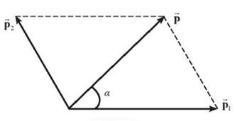 \(\cos \alpha = \frac{{{p^2} + p_1^2 - p_2^2}}{{2p.{p_1}}} = 0,7 \Rightarrow \alpha = {46^0}\)