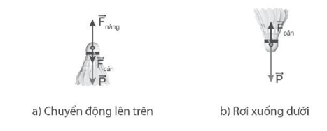 Khi ném một quả cầu lông theo phương thẳng đứng lên cao trong không khí, hãy biểu diễn các lực tác dụng lên quả cầu lông khi nó
