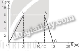 a) Công thức của lực F trong cả quãng đường bằng diện tích giới hạn bởi đồ thị (F, s) như hình.