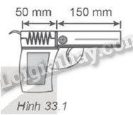 Một súng lò xo gồm lò xo chiều dài tự nhiên 200 mm, độ cứng k = 2 000 N/m và đạn có khối lượng m = 50 g. Ban đầu lò xo bị nén đến chiều dài 50 mm (Hình 33.1). Hãy tính tốc độ của viên đạn khi bắn ra khỏi nòng súng.