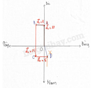 a) Độ dịch chuyển là: d = d1 – d2 = 10 – 6 = 4m. (theo hướng Đông)