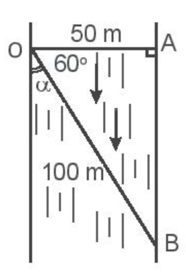 AB = \(\sqrt {O{B^2} - O{A^2}} \)= \(\sqrt {{{100}^2} - {{50}^2}} \)≈ 86,6 m.