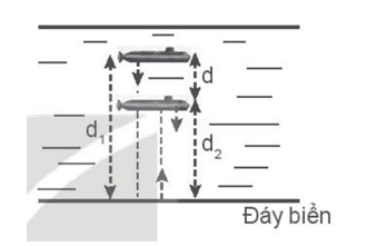 Trong thời gian (t1 + t2), con tàu đã lặn sâu được một đoạn d = v(t1 + t2)