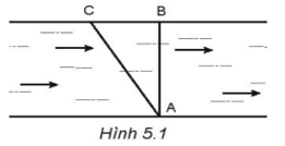Một người chèo thuyền qua một con sông rộng 400 m. Muốn cho thuyền đi theo đường AB, người đó phải luôn hướng mũi thuyền theo hướng AC (Hình 5.1). Biết thuyền qua sông hết 8 min 20 s và vận tốc chảy của dòng nước là 0,6 m/s. Tính vận tốc của thuyền so với dòng nước