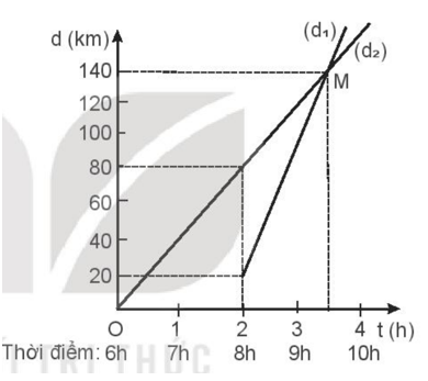 Từ đồ thị ta thấy ô tô và xe máy gặp nhau tại điểm M có dM = 140 km và tM = 3,5h.