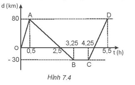 Đồ thị độ dịch chuyển – thời gian của một chuyển động thẳng được vẽ trong Hình 7.4.