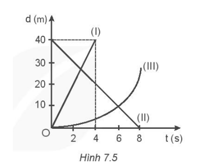 Hình 7.5 vẽ đồ thị chuyển động của ba vật.