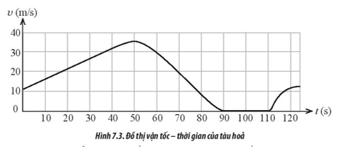 Quan sát đồ thị (v – t) mô tả chuyển động thẳng của tàu hỏa trong Hình 7.3 và trả lời các câu hỏi sau: