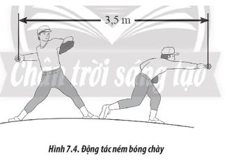 Giải thích tại sao trong trò chơi bóng chày, cầu thủ ném bóng thường sử dụng tư thế giao bóng như Hình 7.4. Vị trí mà cầu thủ bắt đầu tác dụng lực đến khi quả bóng rời khỏi tay cách nhau một khoảng 3,5 m. Có thể xem gần đúng chuyển động của bóng trong tay cầu thủ trong quá trình giao bóng là chuyển động nhanh dần.