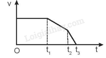 Một người lái xe tải đang cho xe chạy trên đường cao tốc với vận tốc không đổi. Khi thấy khoảng cách giữa xe mình với xe chạy phía trước giảm dần, người đó cho xe chạy chậm dần. Tới khi thấy khoảng cách này đột nhiên giảm nhanh, người đó vội đạp phanh để dừng xe. Hãy vẽ đồ thị vận tốc - thời gian mô tả trạng thái chuyển động của xe tải trên.