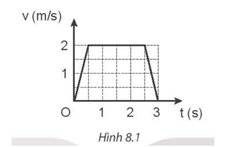 Hình 8.1 là đồ thị vận tốc - thời gian của một thang máy khi đi từ tầng 1 lên tầng 3 của toà nhà chung cư.