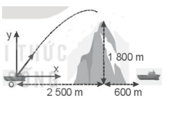 Một con tàu chiến ở bên này ngọn núi trên một hòn đảo, bắn một viên đạn với vận tốc ban đầu 250 m/s theo phương nghiêng góc 75° so với mặt nước biển tới đích là một con tàu khác nằm ở phía bên kia ngọn núi. Biết vị trí của hai con tàu và độ cao của ngọn núi được mô tả như Hình II.5. Hỏi viên đạn có qua được đỉnh núi không và có rơi trúng con tàu kia không?