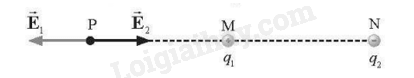 Do hai điện tích tại M và N trái dấu nên điểm P nằm ngoài đoạn MN và gần M hơn (do độ lớn điện tích tại M nhỏ hơn độ lớn điện tích tại N).