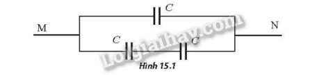 Xét các tụ điện giống nhau có điện dung C=20pF. Ghép các tụ điện thành bộ tụ như Hình 15.1 và nối hai điểm M, N với nguồn điện có hiệu điện thế U = 12V. Điện tích của bộ tụ là