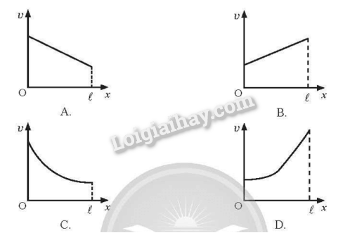 Đặt vào hai đầu đoạn dây một hiệu điện thế không đổi. Đồ thị nào sau đây mô tả phù hợp nhất sự phụ thuộc của tốc độ trôi v của electron theo khoảng cách x từ 0 đến l ?
