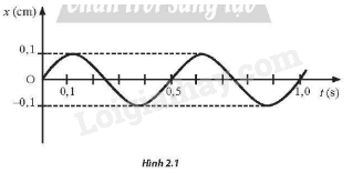 Một vật dao động điều hoà có đô thị li độ – thời gian như Hình 2.1. Tại thời điểm t = 0,5 s, vận tốc của vật có độ lớn là