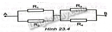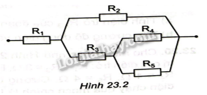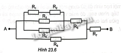 Cho đoạn mạch như Hình 23.11. Tính điện trở của đoạn mạch AB, biết các điện trở có giá trị bằng nhau và bằng R. Biết dây nối có điện trở không đáng kể.