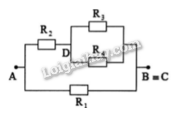 Từ đoạn mạch ta có \(\)\({R_1}//\left[ {{R_2}nt\left( {{R_3}//{R_4}} \right)} \right]\)