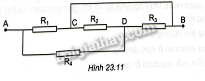 Cho mạch điện như Hình 23.6. Cho biết cáo giá trị điện trở: \({R_1} = 4\Omega \),