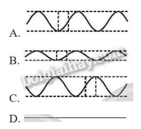 Một hệ sống dùng được hình thành trên dây. Tại một thời điểm, dây có hình dạng như Hình 9.1. Sau một phần tư chu ki sóng, dây sẽ có hình dạng như hình nào dưới đây?