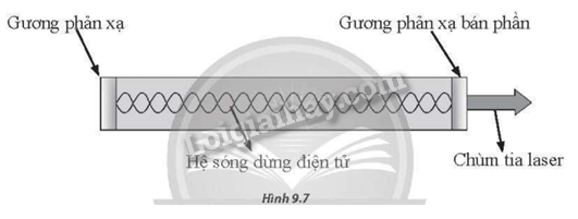 Để chế tạo tia laser, người ta sử dụng hốc quang học (optical cavity): sóng điện từ được phản xạ qua lại nhiều lần giữa hai gương (trong đó có một gương phản xạ bán phần để chùm tia laser lọt ra ngoài). Hai gương này được xem là hai đầu phản xạ cố định. Trong hốc quang học xuất hiện hiện tượng sóng dừng của sóng điện từ (Hình 9.7). Biết tia laser helium-neon có bước sóng 632,992 nm (màu đỏ) và khoảng cách giữa hai gương là 310,372 nm.