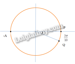 Tại thời điểm t, điểm P hạ xuống thấp nhất thì sau thời gian \(\Delta t = \frac{3}{{400}}s = \frac{{3T}}{{20}}\), điểm Q sẽ tới vị trí biên dương