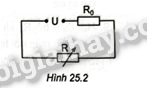 Cho mạch điện như Hình 25.2. Nguồn điện có hiệu điện thế U không đổi, điện trở \({R_0}\) không đổi.