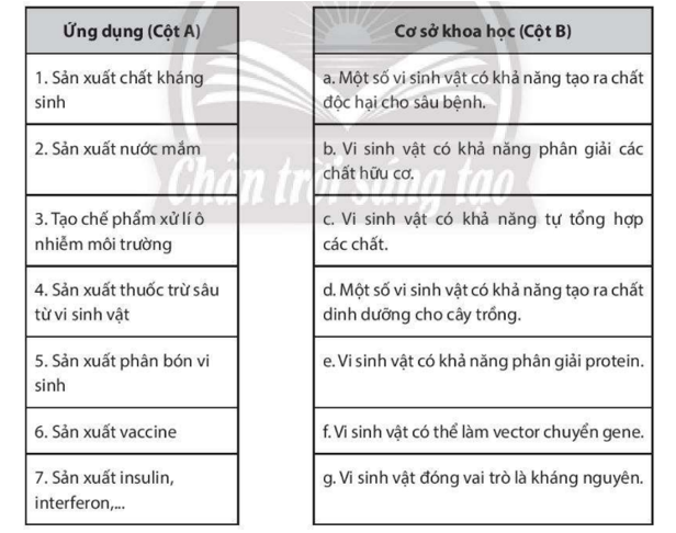 Hãy nối ý ở cột A với ý ở cột B sao cho phù hợp.