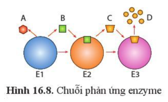 Câu hỏi 4 Trong chuỗi phản ứng ở hình 16.8, xác định trung tâm hoạt động, cơ chất, sản phẩm của các enzyme E1, E2, E3. |