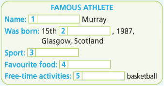 Andy Murray is a famous athlete. He was born on 15 May, 1987, in Glasgow, Scotland. His favourite sport is tennis. He likes eating pizza. He usually watches basketball in his free time.