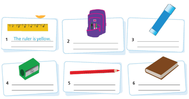 1. The ruler is yellow. (Thước có màu vàng.)