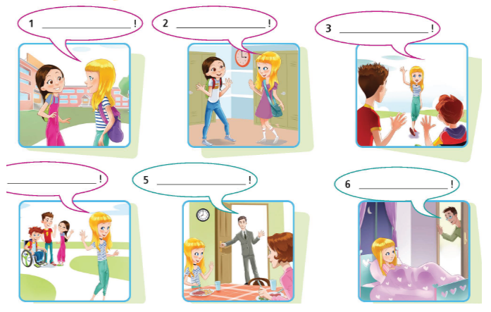 (Hoàn thành bong bóng lời thoại với các từ / cụm từ bên dưới.)