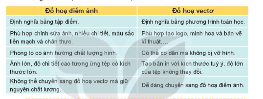 Dựa vào bảng so sánh đồ họa điểm ảnh và đồ họa vectơ